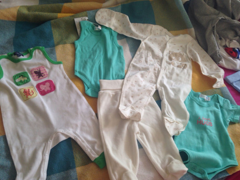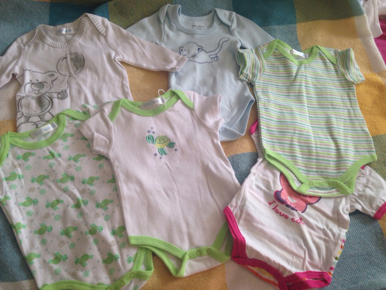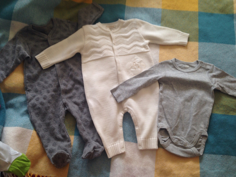А у нас кроватка такая же и люлька-баунсер только белая с зеленым))Одежды конечно много вы купили! Это на какой размер??))