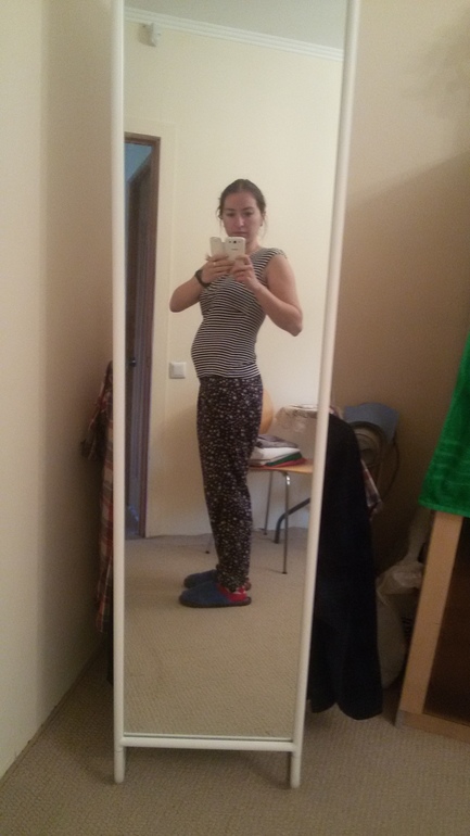 ничего себе у вас уже пуз) у меня срок такойже еле еле вижу намек на пуз, а уж окружающим так вообще не заметно) Я за девочку голосую)