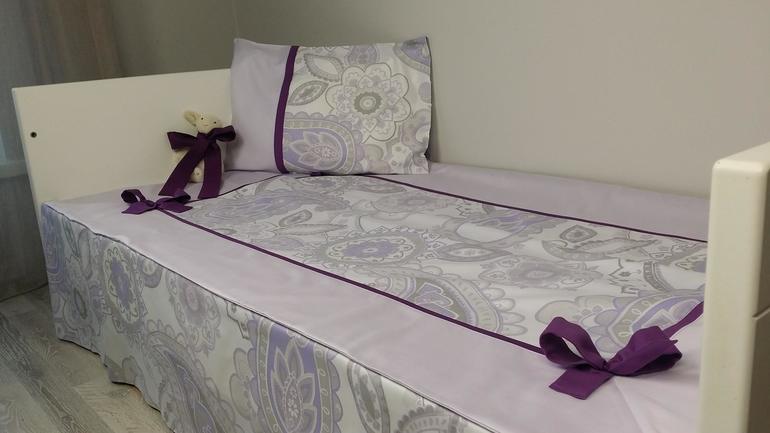 Сшила на заказ постельное для кроватки,но оно пригодится только в будущем,пока планирую использовать пледики.