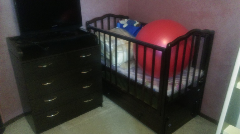 Мебель для малыша (стульчики, шезлонги и проч.)Похвастаюсь Что из крупного купила . Всем мозг вынесла, но купила что хотела! Итак это наш уголок ( телевизора не будет конечно) комод уже полный одеждой))) и всякого рода нужностей!