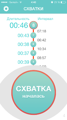 Время шло, у меня тянуло живот как при месячных, тупой, непрекращающейся болью, которая иногда усиливалась. Я даже не могла начать считать периодичность, потому что болело постоянно. Часам к 3 я-таки догадалась выпить но-шпу. Через 15 минут на смену тянущей боли пришла схваткообразная. Причем алгоритм был такой: меня начинает тошнить, снизу поднимается болючая волна, тянет поясницу, каменеет живот, тянет живот. Я подумала и мы с телефоном начали считать. Вот что вышло: