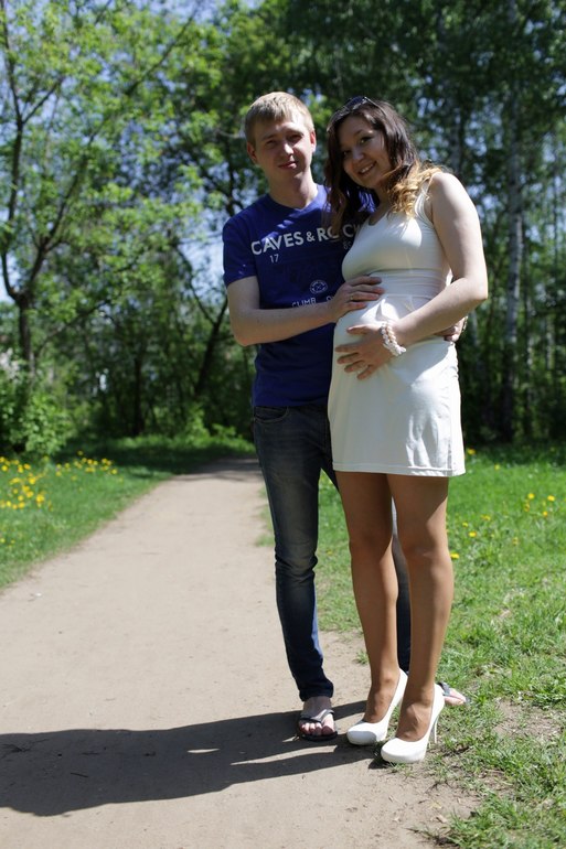 Фото пузиковНам сегодня 22+4 )) жара невыносивая, не знаю ,как с сессии на работу выйду ((Вот наше фото с мужем и малышом ))