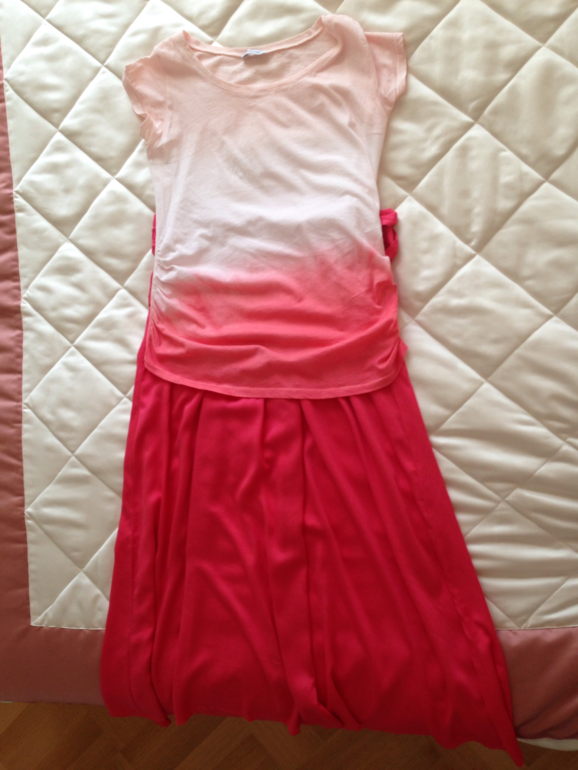 С приходом лета и растущим животиком озаботилась о покупке новый вещей. Посетила много разных магазинов для беременных, в целом, на мой взгляд, все грустно, ассортимент никакой, цвета бледные, тяжело с размерами, цены завышены. Хотела купить пару вещичек на лето не сильно потратившись, но не получилось)). Потратилась все-таки сильно…т.к. абы в чем ходить не хочется даже пару месяцев, тем более летом.
