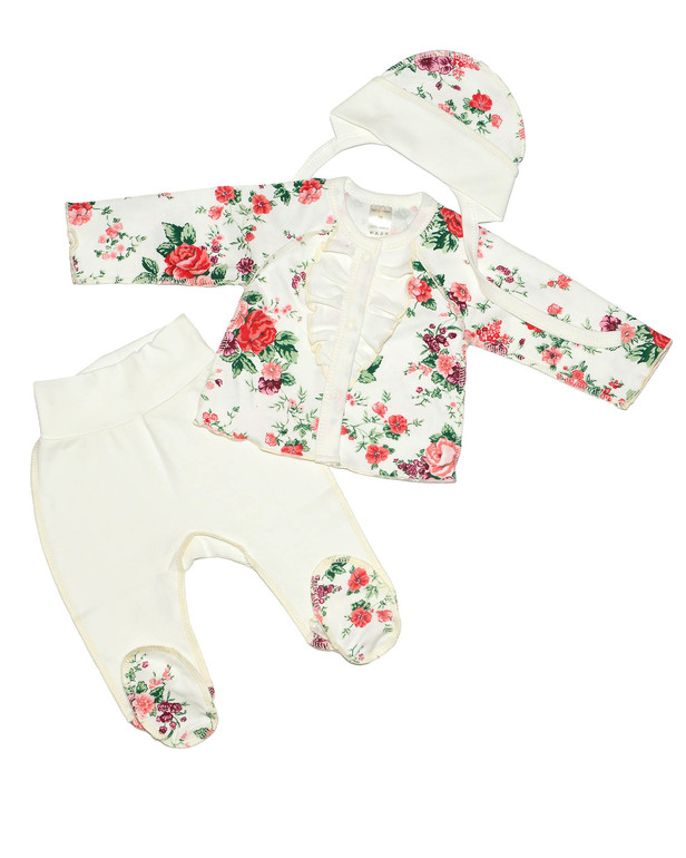 жарко. Мы выписывали в начале октября в хлопковом костюмчике как у вас, пеленке и в летнем конверте. Зачем парить ребенка)