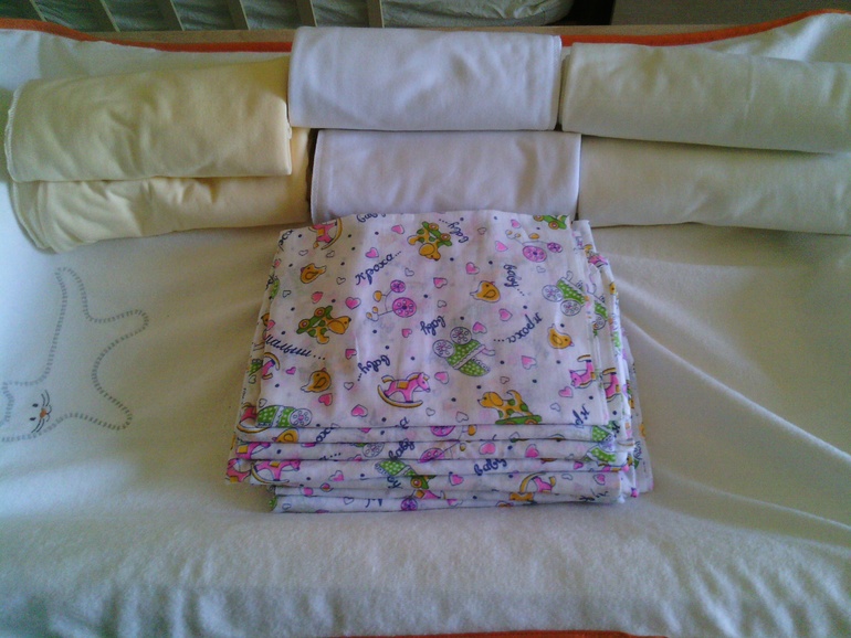 Пеленки ситцевые 10 шт. (под попу) и 6 трикотажных ( 2 в коляску, 2 в люльку, 2 вытирать после купания)