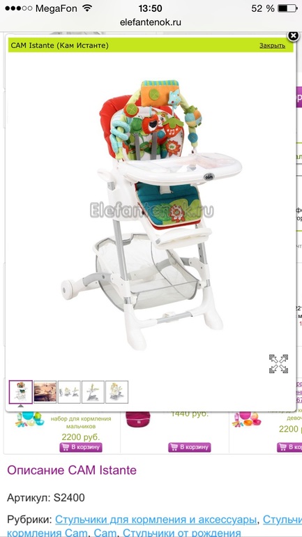Использую Кам истанте. 1 Корзина для игрушек держится очень плохо. уберете ее как только ребенок начнет сам ходить.Если есть дома домашние животные кошки/ собаки можно сразу невешить, сносят ее сразу, Так же в нее все летит когда ребенок начинает есть в этом стульчике сам печеньки и прочее..2 мягкая вкладка очень удобно дочка не потела, сохнет быстро, убрала где то в 7 месяцев. 3 Смена высоты стульчика очень удобно. В год и 4 месяца дочка научилась вылезать из стульчика самостоятельно я поставила в нижнее положение теперь дочка залезает и вылезает из стульчика самостоятельно и я за нее не волнуюсь.4 Дугой пользовались до 5 месяцев единственное игрушки которые были в комплекте дочка не оценила вешала на нее другие игрушки.5 Стул громоздкий и тяжело перетаскивается.6 из 5 пункта вытекает что если ребенок его сильно обляпает тащить в ванну стул будет очень неудобно. Я когда мою стул сильно заливаю кухню.