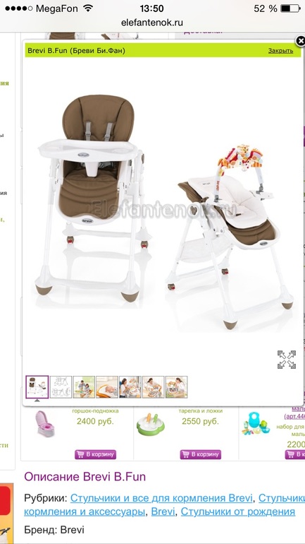 Не могу мимо пройти! Еще не так давно тоже озадачивалась поиском подходящего стульчика, много сравнивала, кучу отзывов прочла и объехала магазинов, чтобы все вживую посмотреть так сказать и выбрала в итоге Бреви би фан. Он полностью укомплектован — ни вкладышей, ни дуг докупать не нужно, а по отдельности все это дорогое. Он практичный — именно его кожзам легко отмыть (на кожзам от вильям много жалоб было на этот счет), он самый широкий из всех стульев, про функционал я не говорю — все регулировки заложены. Нравится, что столик можно хранить на самом стульчике в ножках. Радует съемная перекладина между ног — она к столику прилегает, а не к стулу — ребенку удобнее будет залезать и она не будет ему мешать. Колес 2, а не 4, что на мой взгляд повышает безопасность и устойчивость стула, если вы забыли эти колеса заблокировать. Стул легкий и довольно компактный по сравнению с той же татамией например, его не проблема и с 2 колесами перекатить. Ну вкратце как-то так)) Средняя ценовая категория — мы за 11 тыс брали.