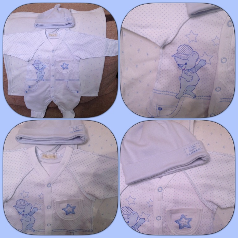 Наряд на выпискуШапочка, слип и что-то типа тонкого двустороннего трикотажного одеяла!