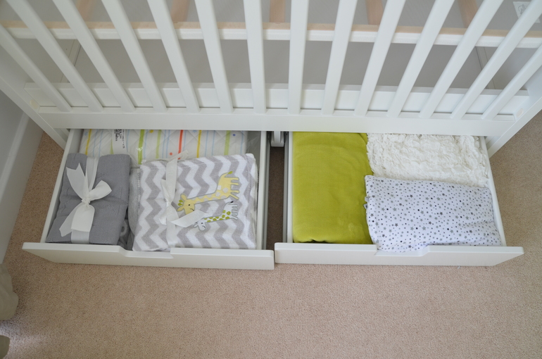 Ну и есть еще бампер бело-зелененький для кроватки из Икеи (виден на заглавной фотографии).