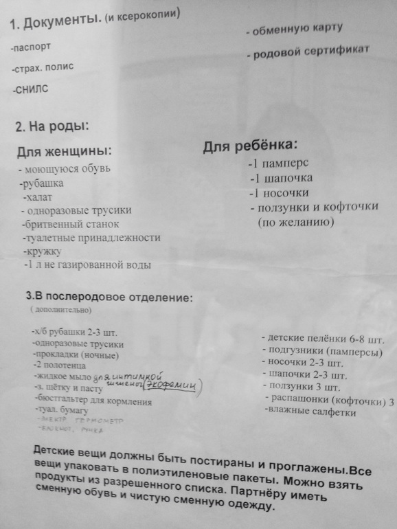 Гинеколог мой-женщина странная,харизматичная и пофигистичная)Сказала на следующий прием прийти 17 июля,правда её не будет,поэтому "давай увидимся после родов")))В связи с этим решила сфоткать список нужностей в роддом и чисто для приличия собрать сумку и мужа на роды:)
