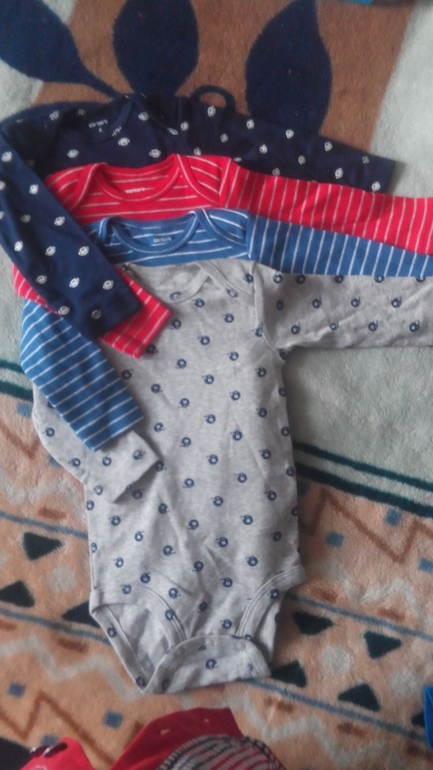 Так как детки у меня погодки,то естественно много вещей осталось от дочки.Все что совсем девчачье розовое и рюшечное отдала подруге.И в принципе имея не один ашановский пакет с бодиками,слипиками и тд можно было остановиться только на наряде для выписки.Я так в принципе и планировала,а тут при походах в магазины руки сами тянулись купить ,что-нибудь мальчуковое.Вот именно что-нибудь голубенькое и все в этом духе(хотя разделение по цвету никогда не делала)но я очень захотела показать всем что у меня среди царства девочек есть маленький мужчинка.Сделала заказ через девочку на ББ Картес ,довольна как слон,много бодиков с коротким и длинным рукавом,тк бодики для меня все ,размеры на 3,6 и 9 месяцев.Но прикладывая бодики на 9 мес на дочку понимаю что и в годик поносим.Качеством осталась довольна как слон!Внизу все от Картес.Телефон не передает всю палитру цветов