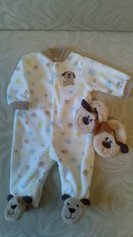 3. Флисовый слип 56 размер, доставшийся в наследство от племяшей мужа, с новыми тапками в тему :)