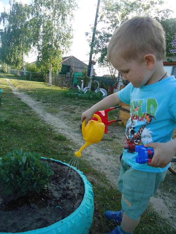 Погода, правда, не балует- дожди и прохладно. Ну будем надеяться, что еще наладится все) А пока мы вкусно едим, сладко спим и много гуляем. А еще консервируем огурцы и кабачки, сушим яблоки и варим компоты))) Максиму так здесь просто раздолье- велосипеды, самокаты, тачки, насосы, песочница личная и много-много внимая от бабули с дедулей.