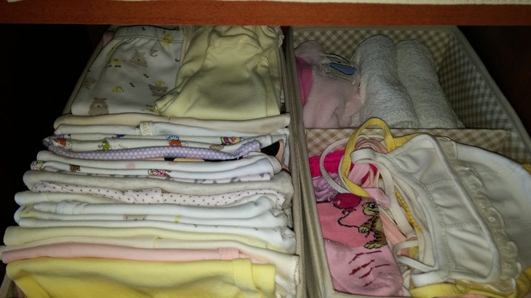 А вот так я организовала хранение вещичек на первое время) так радует глаз, вчера закончила с глажкой, разложила) а теперь хожу любуюсь) очень рада, что в этот раз приобрели в Икеа эти коробочки! Очень удобно.