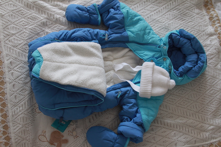 Зимний качественный трансформер, ножки можно соединить, получится мешок, есть варежки и на ножки башмаки на кнопках. Вот думаю подойдёт ли на выписку в декабре.