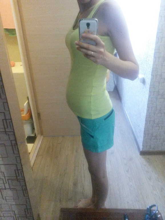 Не могу никак фото вставить, интернет не хочет работать. Фотографировалась с утра, потому что к вечеру живот очень большой)