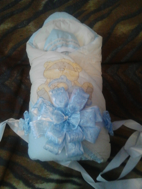 купили красивый бант на конвертик. ванночку приобрели и ещё мелочи