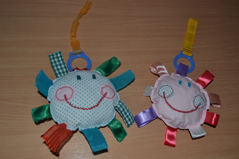 А это солнышки-погремушки))) Попробовала себя и в шитье))