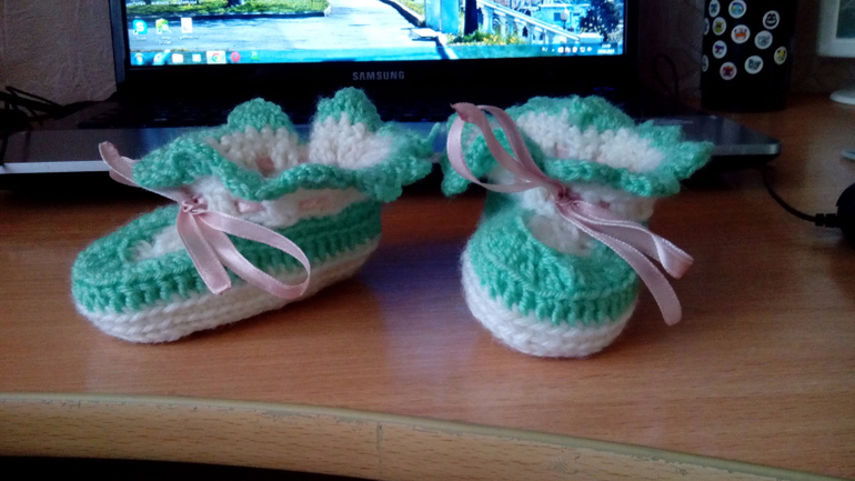 Не думала, что это тааак затягивает..вязать хочется почти постоянно)) Вяжу пока только простые вещи..пинетки да шапочки))