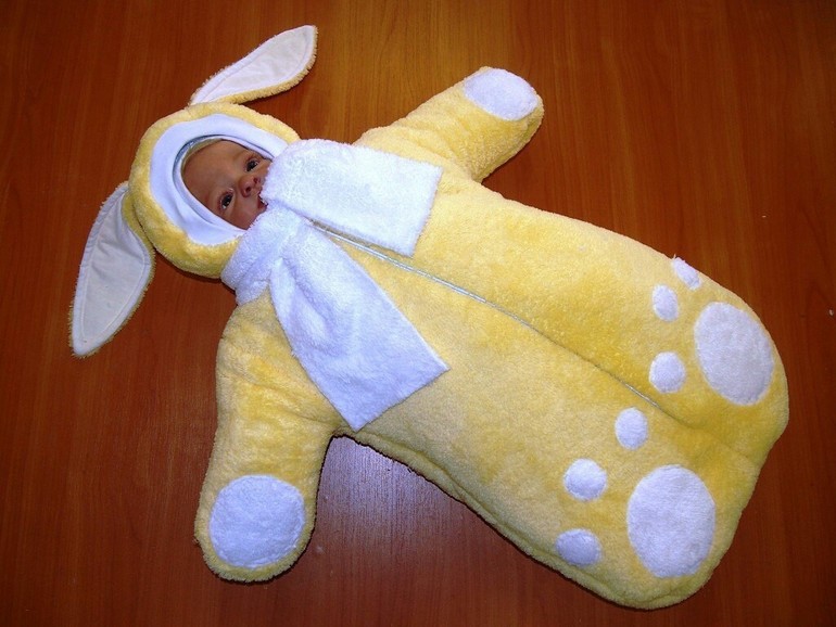 А можно я спрошу? Первый вариант — зайчиком, там в комплекте всё, что под низ одевается — пеленка, распашонка, чепчик и т.д? И где такая красота продается?