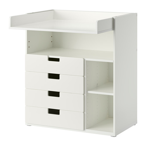 Икеа. Пеленальный столик с возможностью трансформации в будущем в письменный стол для ребенка. Цена ближе к второму варианту, но все же дешевле (10 тыс). Нравится возможность трансформации, открытая полка сразу под пеленальной поверхностью. По сравнению с прошлым вариантом дизайн, конечно, простоватый, но это икеа, ее легко и продать будет если что. Ящики кажутся какими-то невместительными, хотя может я ошибаюсь.