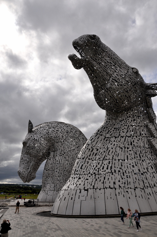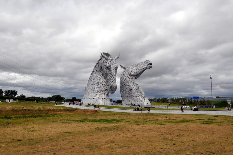 И последний день - дорога домой через всю Англию. 1200 километров за день, включая паром. С утра заехали на недавно построенный монумент (не знаю как назвать по-другому) The Kelpies, в окрестностях городка Falkirk: