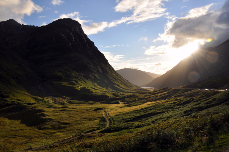 Далее к основной цели - нашему перевалочному пункту в Fort Augustus. Здесь мы ночевали 4 ночи, совершая вылазки в разные части Highlands. Дорога проходила через волшебную долину Glen Coe, которую мы застали в предзакатных лучах. Вот она (и ее окрестности):