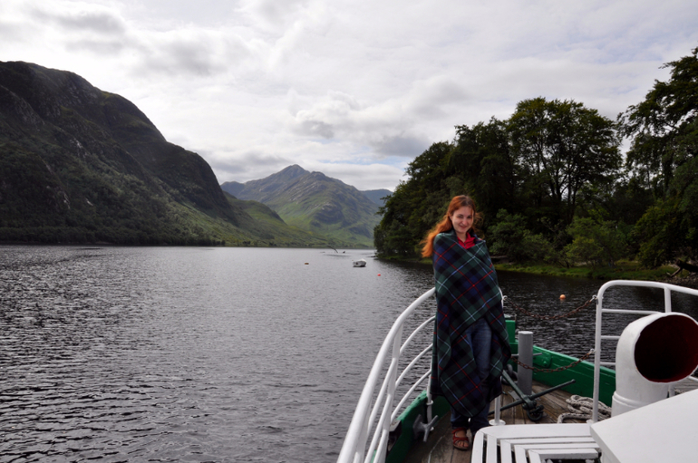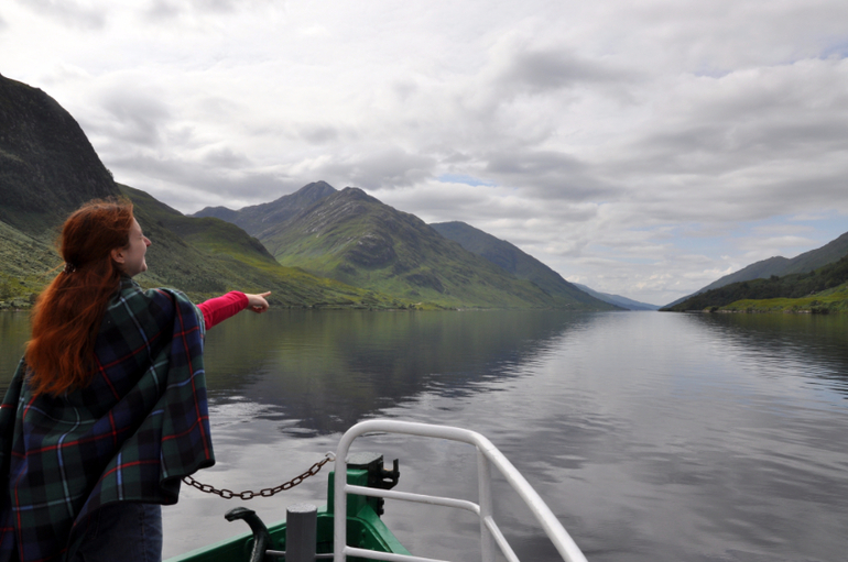Потом - Топ 1 момент всего отпуска - прогулка на кораблике по Loch Shiel (там куда я показываю пальцем, в Гарри Поттере стоял Азкабан :) Тут нам особенно повезло и с погодой и со временем: мы были единственными желающими на эту прогулку, так что она получилась вроде как приватной, да еще и с капитаном)