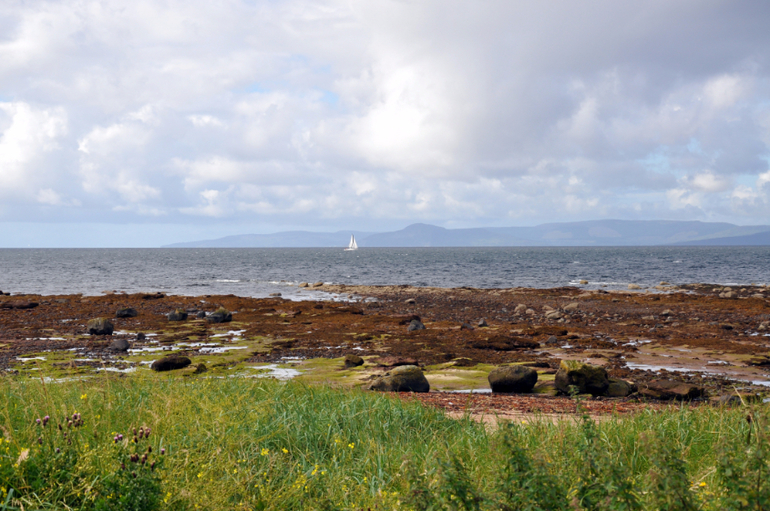Ладно. Побывали в гостях у фэйри и надо ехать дальше. Пересекаем границу Шотландии, ночуем в городе Prestwick и оттуда медленно крадемся в Highlands по западному побережью (немного отошли от маршрута по совету хозяйки B&B и путь от Prestwick до Glasgow прошел прямо по береговой линии). Вот так выглядит это самое побережье, меняясь до неузнаваемости с каждым облачком, в которое попадает солнце.