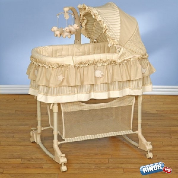И на первое время нам отдают люльку. Я решила взять,так как ее удобно перевозить из комнаты в комнату, ставить рядом с собой. Если ночью сынуля будет не давать папке-работяге спать,будем переезжать в гостинную)