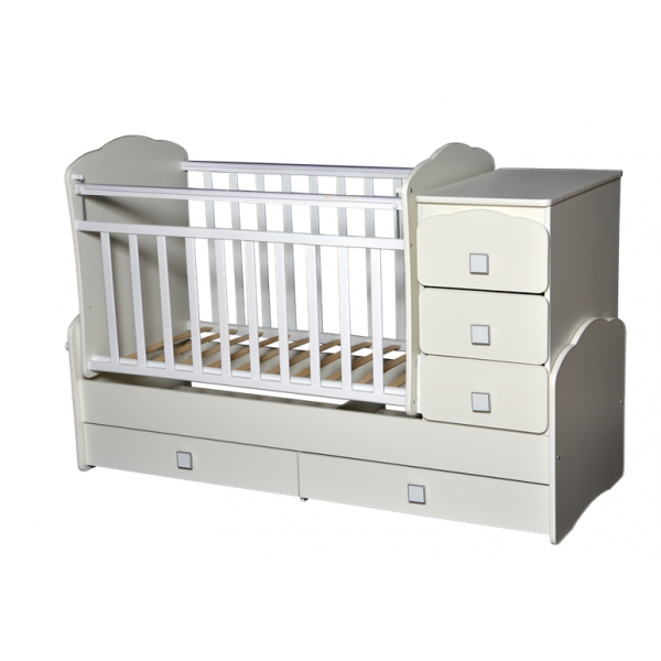У нас вот такой комплект кроватка + комод. В самой кроватке ящиков море. Есть механизм качания. Мебель.недавно собрали и я поняла, что кровать с ящиками это мега удобно. Столько всего в нее одну ( не считая комода) поместилось. Ее кстати можно купить и отдельно Цвет лайм. http://baby-products.ru/catalog/detskie_komnaty/detskaya-komnata-belyy-laym-krovatka-transformer-komod/