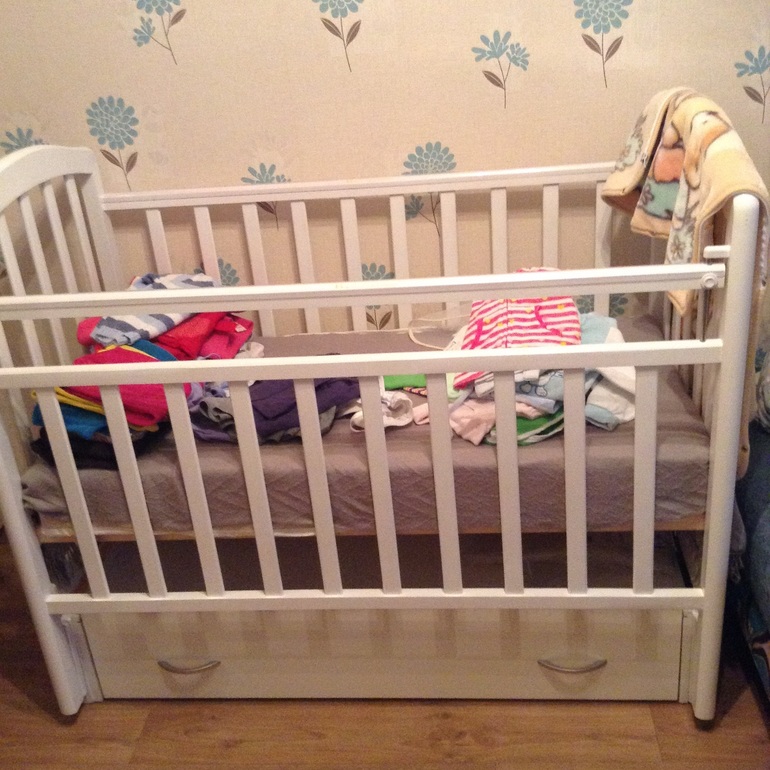 У нас кроватка Орматек Золушка. Отличная краватка. У кроватки 2 положения ложа, есть полозья для качания. Пользуемся уже второй год. Недавно сняли боковинку и дочка спит теперь как на диванчике