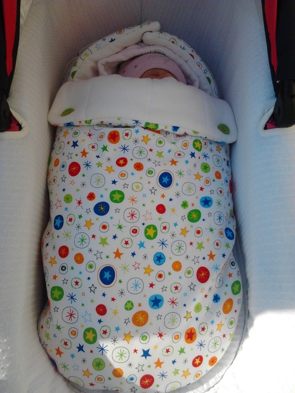 Рожала в декабре. Мы из "верха" покупали зимний конверт керри, мне очень нравится, теплый, легкий, удобный и прорезь для ремня безопасности есть. Потом в нем до теплой весны гуляли)