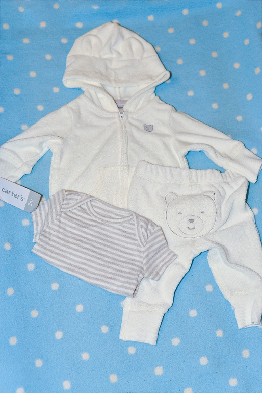 6. Махровый костюмчик Картерс. Очень понравился, догло выбирала между двумя - этим и таким же, но капюшон без ушек, но зато ножки ползуночками. В итоге ушки ушки победили. Подумала, что штанишки можно подворачивать при необходимости, должно быть удобно.