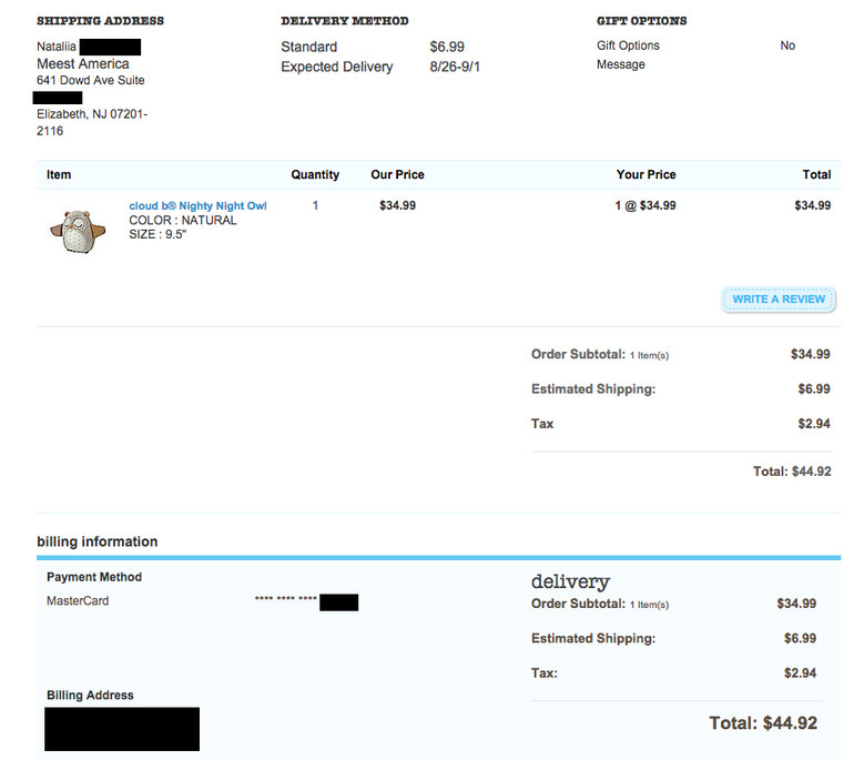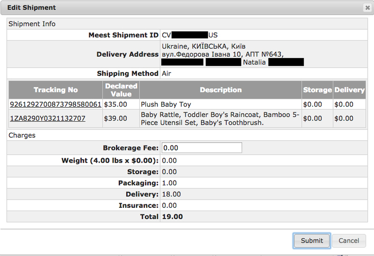 4. Стоимость авиа доставки бадерольки почти 2 кг с самовывозом из отделения Мист-Экспресс в Киеве. Я отправляла сову+парочку других покупок. Приехала посылка ровно через неделю с момента отправления из США. Сова весила в упаковке около 700 г. Если отправлять одну сову авиа с самовывозом - можно претендовать на тариф до 1 кг - это 11 долларов. Посредники возьмут столько же за доставку такого веса, но ждать придется дольше точно, так как они всегда собирают компанию. И не факт, что кто-то захочет выкупать в этот магазине, он не очень популярный.