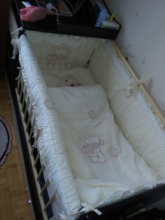 Ну и фото нашей кроватки. Бяша караулит ,как всегда