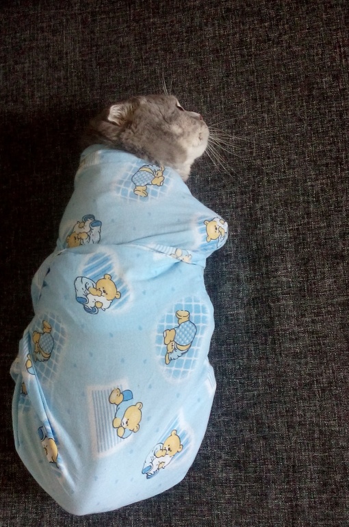 А ещё на днях муж спросил как пеленать,показала)немного пострадал кот))