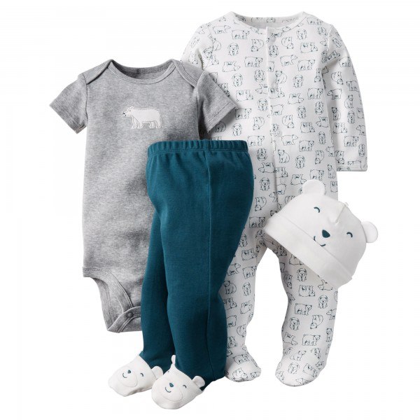 Ну я думаю так:подгузник,носочки,комплект из Картерса (фото внизу) антицарапки,зимняя Шапочка и конверт зимний .Как думаете хватит не замерзнуть ?Думаю ,ещё в плед тёплый завернуть перед тем как положить в конверт на овчине...