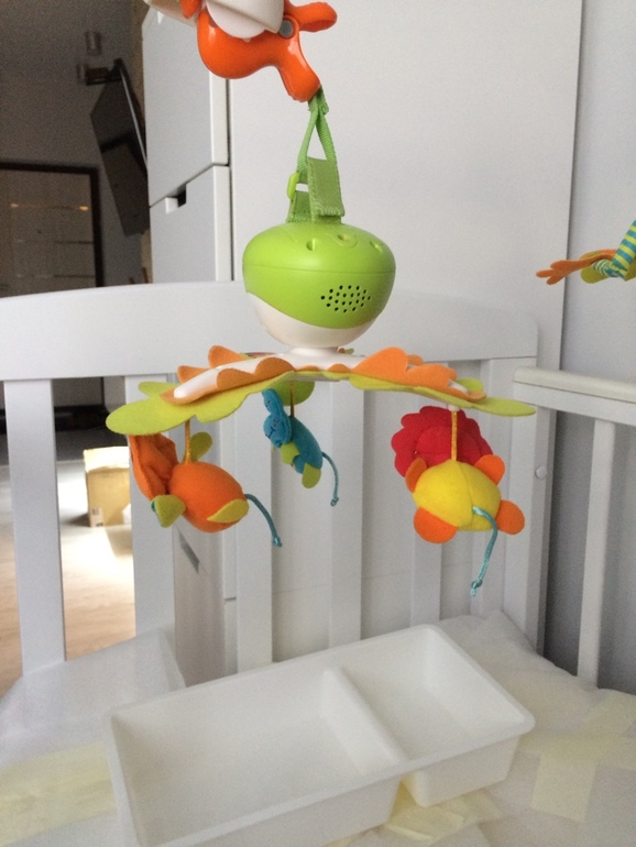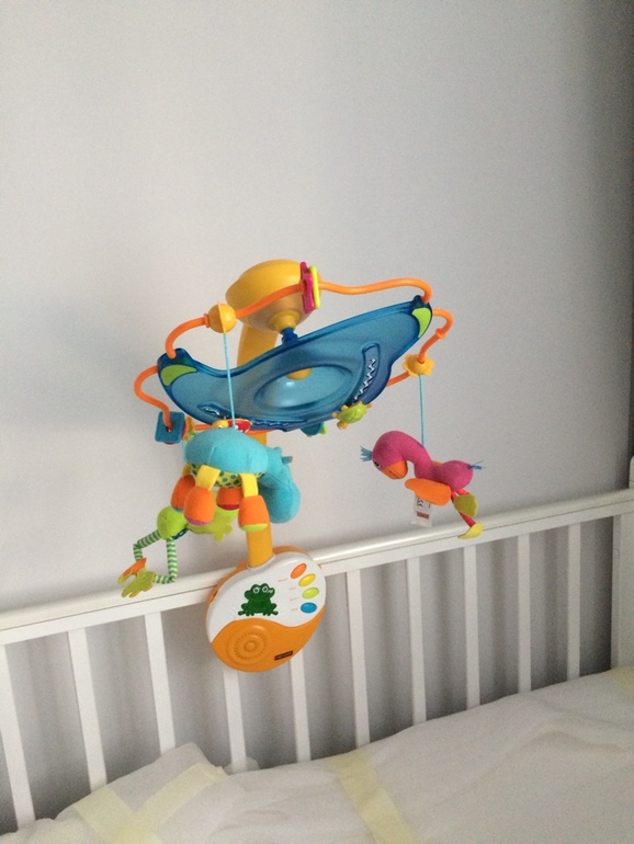Мелкому постирала и перегладила все шмотки. Купили 2 мобиля - 1 большой на кровать и второй поменьше с крабом - для автокресла. На очереди люлька-баунсер. Ждем момента.