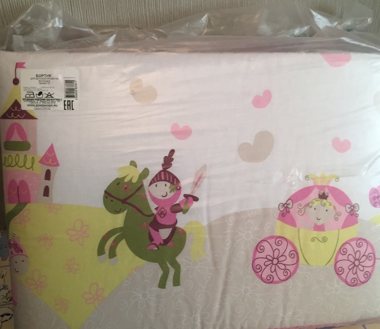 4. Бортики в кроватку купила от фирмы Сонный гномик "Золушка", мне понравился рисунок и то, что чехлы у бортиков на молнии и легко отстегиваются и стираются!