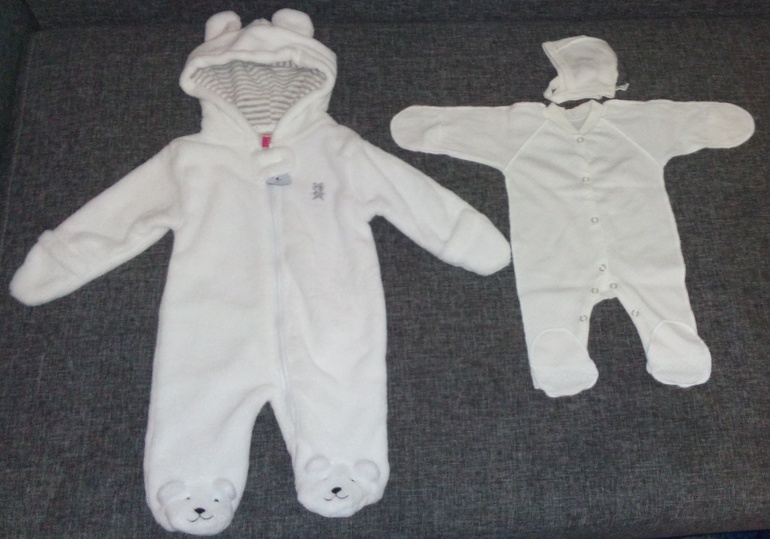 Изначально планировалась выписка в конверте на овчине,который в дальнейшем будет использоваться для прогулок...Под него,тонкий слип+чепчик,флисовый костюм, тёплая шапочка...Но...Конверт покупала моя мама и когда она прислала его мне,оказалось,что он огромный,маркировка на рост 68,боюсь потеряемся(((Флисовый костюм заказывала на Али,пришёл с маркировкой на 3 мес,вообщем тоже большой...Я в растерянности...
