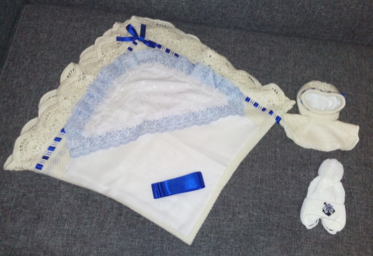 Насчёт шапки,для прогулок моя мама связала шапку-шлем,чтоб шейка не мёрзла,а на выписку неудобно наверно,лучше просто на завязках одеть!?
