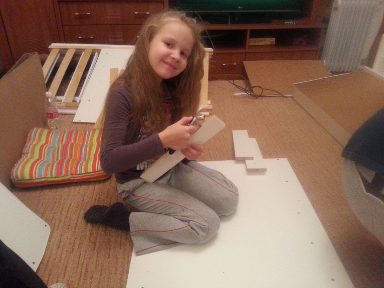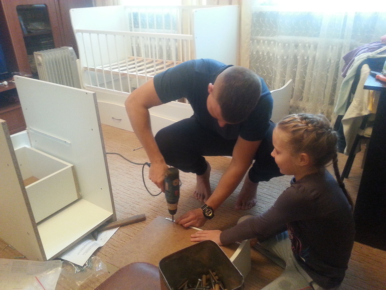а это фото во время сборки кроватки) Сестра тоже делает вид что помогает))))