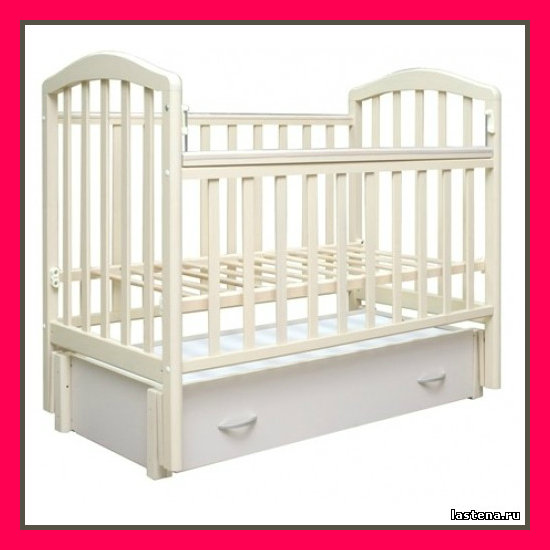 Минусов не замечено)) вместительный ящик, качает плавно очень, если не надо качать - фиксируется. Материал хороший. Кроватка очень крепкая!