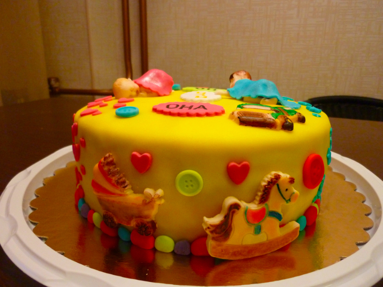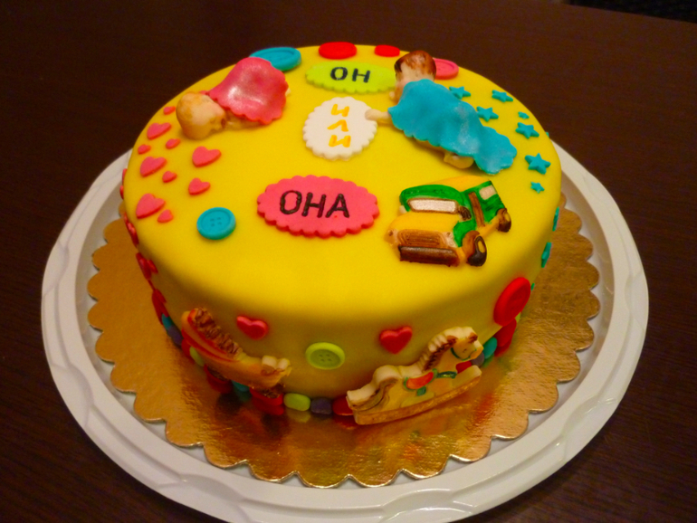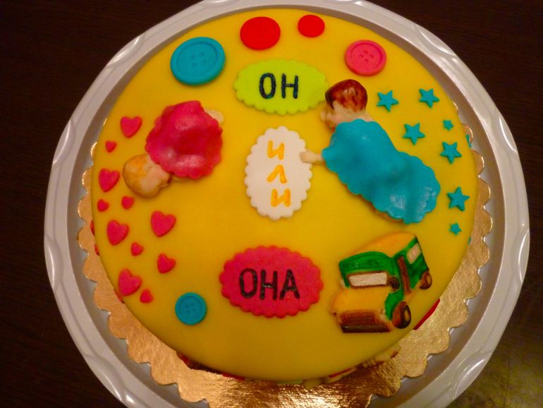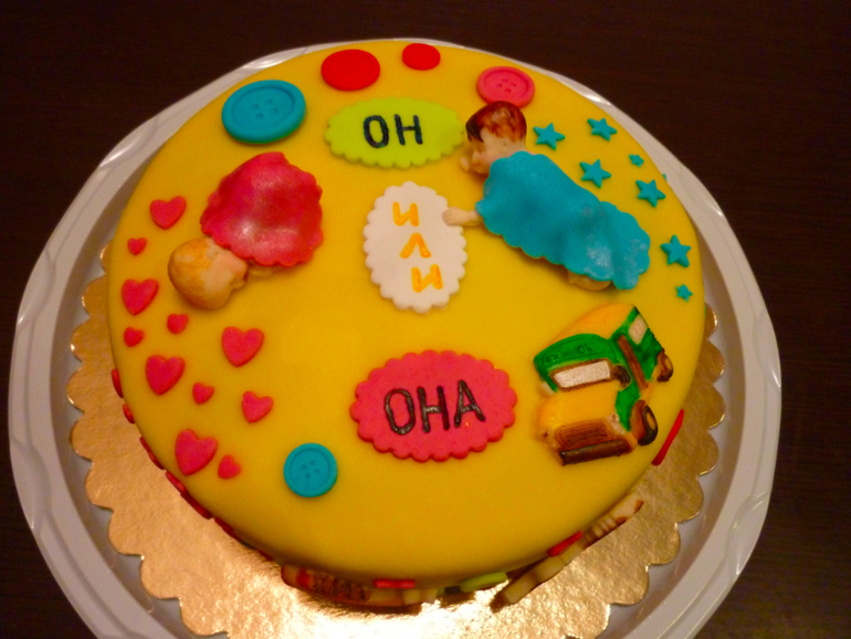 Мы заказывали тортик праздничный, узнать пол можно было только разрезав его -))