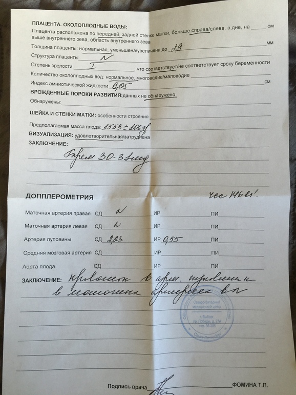 УЗИ, КТГ, доплерВчера съездила в Россию на узи. Женшина была приятная, все рассказала и показала, сделала фотографию. По прежнему у нас будет сыночек. Ох как я боялась что узист в 20 недель ошибся, но нет! Я рада! Наш сыночек весит 1553 грамма. И что удивительно лежит головкой вниз!😱 Два дня назад врач ощупывал и сказал что точно на попе сидит. И самое странное я не заметила что бы он перевернулся или как то шевеления изменились. По узи все хорошо, соответствуем сроку! Слава богу! Теперь можно со спокойной душой ждать родов. Осталось каких-то 9 недель, а может даже и меньше, ой кошмар😱😃
