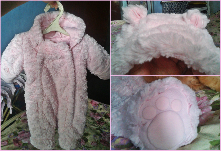 Мохнатый деми-комбез 62-го размера,долго его не поносим,конечно.