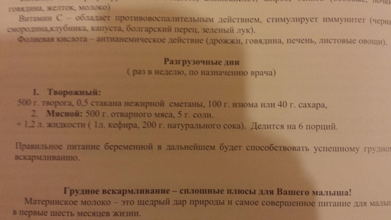 Да) в конце там написано про витамины, про разгруз.дни, про то, что малышу нужно в первое время, про анализы во время Б и для чего они. Не за что)