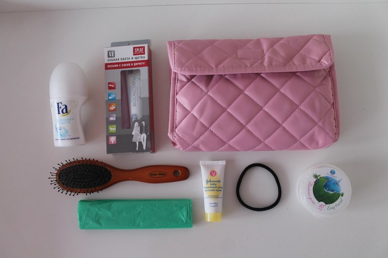 *жидкое детск.мыло,гель для душа,шампунь(у меня все это в маленьких бутылочках для дорожного набора,очень удобно)
