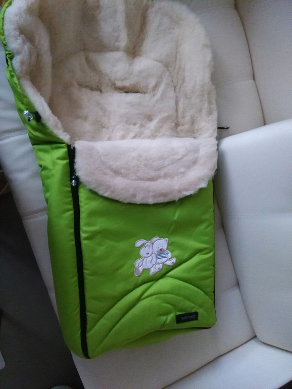 ярко-зеленого цвета, фото не передает(( Думала на выписку (слип махровый, одеяло и конверт ниже)